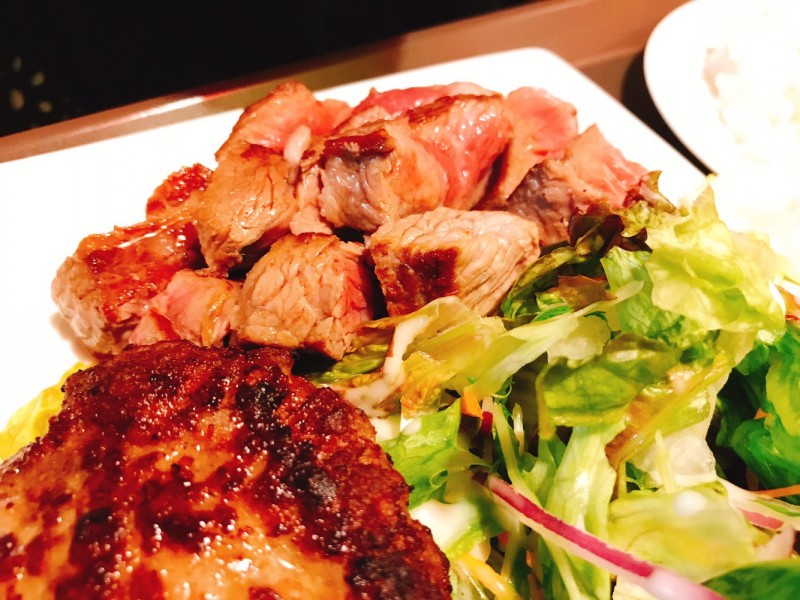 ハンバーグは、肉肉しい感じで柔らかさというよりも、肉!って感じで硬さを感じました。個人的にはステーキよりもアンバーグが好みかも。